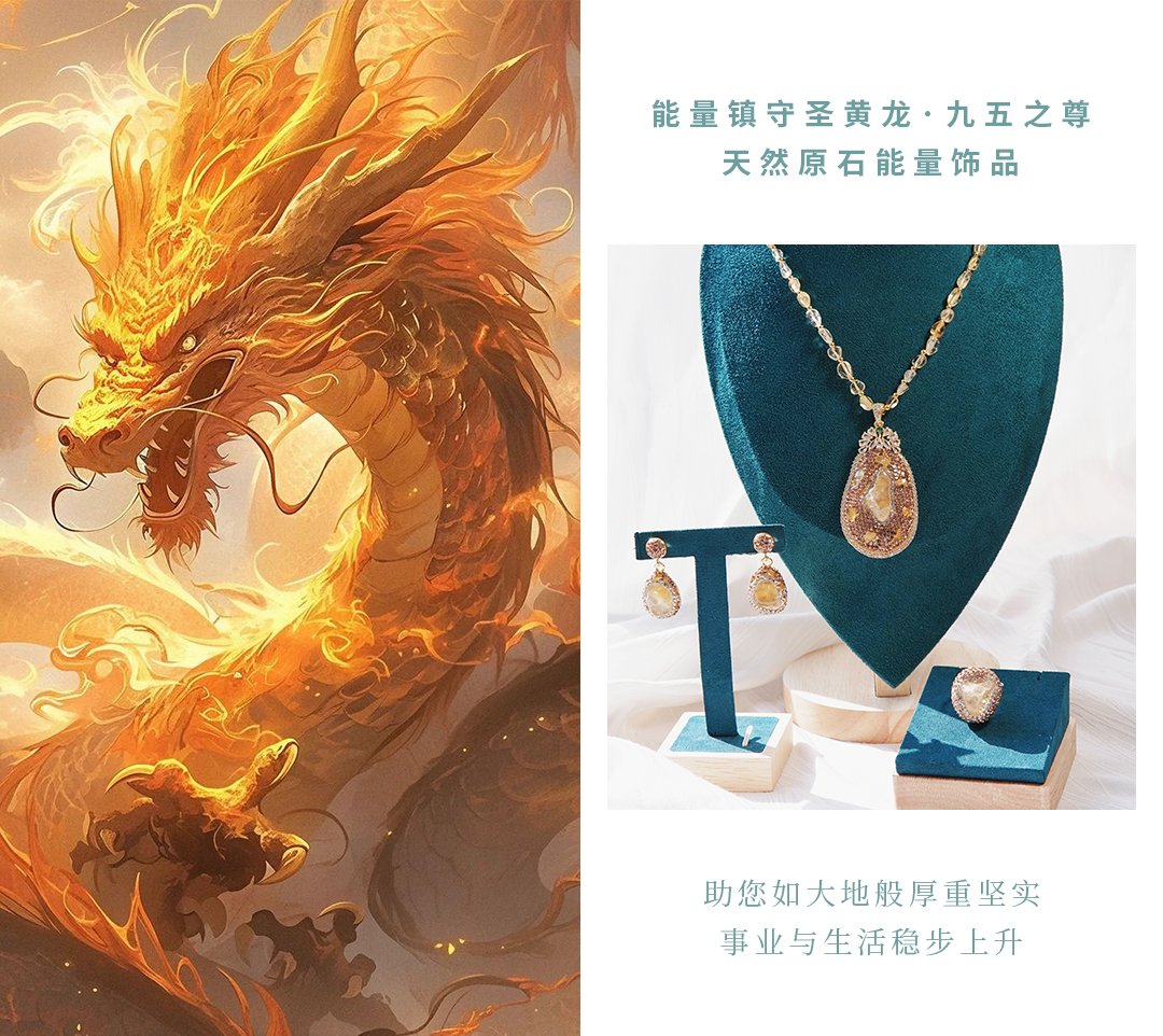 Inspired by the Yellow Dragon from Huainanzi, the cosmic axis governing celestial seasons and earthly rhythms. This sacred guardian’s golden scales, pulsing with primordial earth energy, are reimagined as sacred geometry in modern jewelry. The citrine main stone embodies the sun’s abundance, while clear quartz constellations form a 28-star energy matrix – manifesting the imperial wisdom: “Virtue sustains all things.”